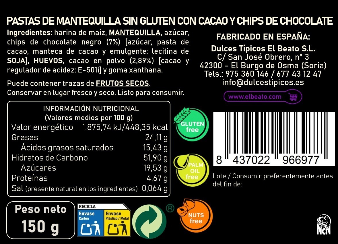Así son nuestras pastas artesanas de mantequilla y cacao con chips de chocolate de 50g/ud.